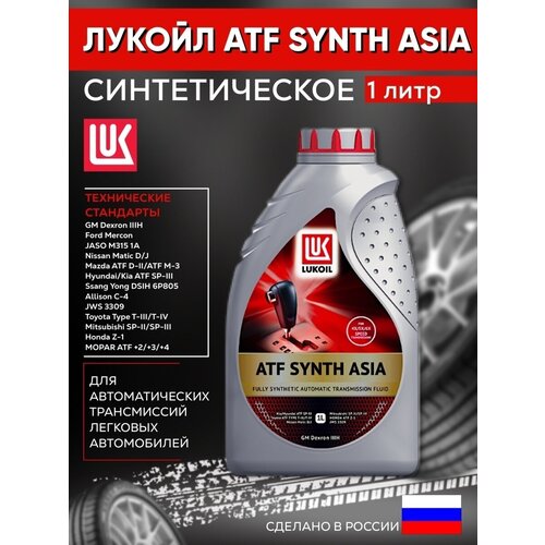 ЛУКОЙЛ ATF SYNTH ASIA - высококачественная жидкость для автоматических трансмиссий легковых автомобилей, специально разработанная с учётом требований АКПП азиатских производителей трансмиссий (Jatco, Aisin Warner и др.). Производится на основе собственного синтетического базового масла и специально подобранного пакета присадок с современными модификаторами трения. ЛУКОЙЛ ATF SYNTH ASIA рекомендована для использования в 4-, 5- и некоторых 6-ступенчатых АКПП легковых автомобилей японских и корейских производителей (Toyota, Mitsubishi, Nissan, Honda и многих других).