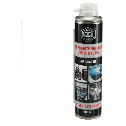 Пневматический очиститель агат For Every Day, 400 мл, аэрозоль. Предназначен для очистки (выдувания) пыли и мелкого мусора из труднодоступных мест салона автомобиля (дефлекторы воздуховодов, периметр ЖК дисплея мультимедийной системы, панели приборов и др.), офисной оргтехники (корпуса компьютеров, ноутбуков, клавиатур, печатных плат) и бытовых приборов. С успехом применяется и для бесконтактной очистки линз оптических приборов (фотоаппаратов, микроскопов, биноклей).
