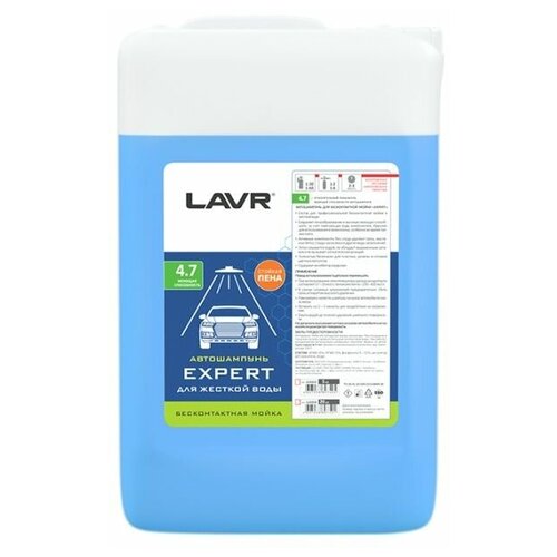 Жесткая вода съедает всю пену? Измените ситуацию в свою пользу с LAVR и автошампунем EXPERT для бесконтактной мойки в жесткой воде. Он прекрасно сохраняет пенообразование и высокую моющую способность даже при смешивании с водой из скважины и в период межсезонья. Секрет такой эффективности прост. Профессиональный состав EXPERT содержит смягчающие компоненты, которые обеспечивают легкое нанесение и экономичное использование в любых обстоятельствах. Автошампунь LAVR EXPERT без следа удаляет грязь, масляные пятна, следы насекомых и другие виды загрязнений легко смывается водой обладает нейтральным запахом безопасен для аллергиков бережно относится к пластику, резине и сплавам цветных металлов. защищает лакокрасочное покрытие от коррозии. Состав: Анионные ПАВ 5-15%, неионогенные ПАВ 5%, эфиры гликолей 5%, хелатирующие добавки 5-15%, регулятор рН 5-15%, краситель 1%, вода