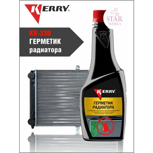 Присадки в систему охлаждения KERRY KR-330 быстро и эффективно устраняет утечки охлаждающей жидкости из системы охлаждения. Герметизирует повреждения, образуя прочную эластичную пробку только в местах течи. Не забивает каналы, полости и трубки радиатора. Препарат для устранения течи радиатора начинает работать только при наличии утечки жидкости. Локализует утечки охлаждающей жидкости в местах, которые достаточно трудно обнаружить. Совместим со всеми типами охлаждающих жидкостей. Подходит для различных типов радиаторов. Не вредит резиновым, пластмассовым патрубкам, уплотнителям и прокладкам. Герметик радиатора KERRY 355 мл служит для устранения протечек радиаторов разного типа и модификаций. Не повреждает детали систем охлаждения, такие как уплотнители, прокладки, патрубки. Не засоряет каналы радиатора. Герметик радиатора представляет собой смесь воды, 1,2-этандиола, лигносульфонатов, производных целлюлозы, наполнителей и красителя. KERRY KR-330 останавливает утечку охлаждающей жидкости, не забивает каналы и трубки радиатора, совместим со всеми типами охлаждающих жидкостей. Способ применения: Снять крышку радиатора, предварительно убедившись, что двигатель выключен и остыл. Хорошо встряхнуть флакон. Добавить содержимое флакона в радиатор (для системы охлаждения объемом меньше 8,5 л добавить ½ содержимого флакона). Убедиться, что радиатор достаточно наполнен. Закрыть крышку радиатора. При включенном отопителе и выключенном кондиционере запустить двигатель на холостом ходу до остановки течи в системе охлаждения. Снять крышку радиатора, предварительно убедившись, что двигатель выключен и остыл. Добавить при необходимости охлаждающей жидкости. Закрыть крышку радиатора. Для большей эффективности перед использованием герметика рекомендуем вымыть радиатор «Очистителем радиатора KERRY».