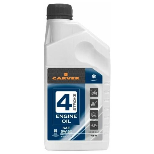 Моторное масло CARVER 4T, 5W-30, API SL/CF, для четырехтактных двигателей, полусинтетическое, 1 л.