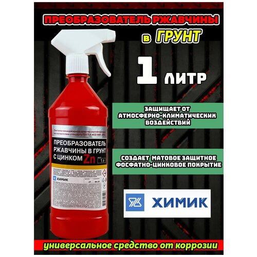 Преобразователь ржавчины в грунт с цинком предназначен для обработки металлических поверхностей с целью удаления коррозионных поражений (ржавчины) и защиты их от последующих атмосферно-климатических воздействий. Образует грунтовочный слой, обеспечивающий адгезию с любыми лакокрасочными материалами. Не требует последующей промывки водой. Преобразователь ржавчины перед нанесением встряхнуть. С обрабатываемой поверхности удалить рыхлый слой ржавчины, смазку, грязь, пыль. На очищенную поверхность кистью втереть преобразователь. Не допускать попадания влаги на поверхность при нанесении. Через 15-20 минут после высыхания образуется матовое защитное фосфатно-цинковое покрытие серого цвета. После высыхания удалить избыточный налет состава с поверхности металла щеткой. Окончательное высыхание второго слоя 30-40 минут. Наносить лакокрасочный материал можно через 2 часа после нанесения последнего слоя преобразователя. Преобразователь ржавчины образует грунтовочный слой, который легко удаляется шпателем. Не препятствует адгезии с любыми лакокрасочными материалами. Не требует последующего смывания водой.