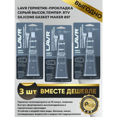 LAVR Герметик прокладка Серый высокотемпературный может заменять резиновые, бумажные и металлические прокладки, уплотнители и сальники. Не содержит в своём составе кислот и растворителей, что позволяет применять его в электрических соединениях и датчика. Диапазон рабочих температур от -62 градусов до 399 градусов. Подходит для монтажа узлов двигателя и трансмиссии, таки как: клапанная крышка, впускной коллектор, водяная помпа, поддон картера двигателя, корпус коробки передач.