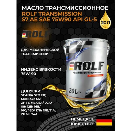 Высококачественное синтетическое всесезонное трансмиссионное масло ROLF TRANSMISSION S7 AE 75W-90. Производится на основе высокотехнологичных синтетических базовых масел, что обеспечивает очень высокий индекс вязкости, благодаря чему превосходные низкотемпературные свойства масла обеспечивают плавное переключение передач при самых низких температурах. Применение синтетических компонентов так же наделяет масло отличной термоокислительной стабильностью, что гарантирует полную стабильность свойств масла на весь период эксплуатации. Применяется в тяжелонагруженных зубчатых передачах, дифференциалах, конечных передачах, коробках отбора мощности, планетарных передачах, работающих в условиях повышенных температур, высоких скоростей и ударных нагрузок, а также низких скоростей и чрезвычайно высоких крутящих моментов, в конструкции которых присутствуют гипоидные шестерни с большим смещением осей, где требуются трансмиссионные масла уровня API GL-5.