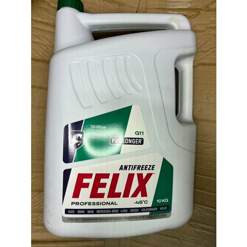 Антифриз FELIX Prolonger 10-кг феликс - антифриз зеленый 10кг применяется в системах охлаждения двигателей всех легковых и грузовых автомобилей и спец техники. Антифриз для автомобиля предназначен для круглогодичного применения. Антифриз зеленый 10л разработан для тяжелых климатических условий. Антифриз синтетик работает при любых температурах воздуха. Антифриз FELIX - аналог антифриз X-FREEZE, антифриз sintec, антифриз ниссан, антифриз лукойл, sintec антифриз g12, антифриз toyota, антифриз nord, антифриз сакура, тосол, антифриз красный, антифриз желтый. Жидкостное охлаждение FELIX обладает защитой двигателя от перегревания и переохлаждения, увеличивает ресурс работы помпы, радиатора, термостата. Жидкость для охлаждения уменьшает расход бензина, моторного масла. Охлаждающая жидкость двигателя поддерживает оптимальную температуру. Зеленый антифриз FELIX имеет срок эксплуатации до 120 000 км пробега. Применяя антифриз в своем автомобиле вы будете наслаждаться комфортными поездками.
