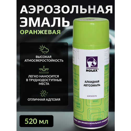 Эмаль оранжевая аэрозоль 520 мл Holex - это высококачественная быстросохнущая алкидная эмаль, предназначенная для ремонта автомобилей, покраски предварительно загрунтованных металлических и деревянных поверхностей.Обладает прекрасным блеском, отличной атмосферостойкостью и высокой механической прочностью. Цветовая гамма оптимально подходит для ремонта отечественных автомобилей.Эмаль легко наносится на труднодоступные места и имеет хорошую укрывистость. Благодаря глянцевому эффекту, поверхность приобретает яркий и насыщенный цвет.Для достижения наилучшего результата рекомендуется предварительно очистить, обезжирить и высушить поверхность. Шлифовать поверхность следует сухим шлифованием Р360-Р400 или мокрым шлифованием Р800-Р1000.Перед применением встряхнуть баллон 2-3 минуты и периодически встряхивать баллон во время нанесения. Распылять эмаль на расстоянии 20-30 см от поверхности, держа баллон распылительной головкой вверх. Наносить эмаль при температуре не ниже +15°C. Межслойная выдержка составляет 5-10 минут, а сушка от пыли - 2 часа. Монтажная прочность достигается через 24 часа.После применения очистить распылительную головку и отверстие клапана, перевернув баллон распылительной головкой вниз и нажав на нее до выхода чистого газа.Эмаль Holex - это надежное и качественное решение для обновления и защиты вашего автомобиля.