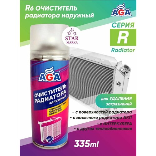 520 мл. R6 Очиститель радиатора наружный AGA706R. Удаляет любые дорожные загрязнения с наружных поверхностей радиаторов! Предназначен для удаления любых дорожных загрязнений с наружных поверхностей радиатора двигателя, интеркулера, масляного радиатора автоматической коробки передач и других теплообменников легковых и грузовых автомобилей всех марок. Защищает двигатель и АКПП от перегрева, обеспечивает эффективную работу кондиционера. Рекомендуется применять через каждые 15–20 тыс. км пробега во избежание сплошного спекания грязи на радиаторах, ухудшения охлаждения, нарушения работы и перегрева двигателя. Применение: Убедитесь, что обрабатываемый радиатор (или иной теплообменник) имеет температуру не более +35–40 °С, а температура окружающего воздуха не ниже +5 °С. Смочите обильным количеством воды всю наружную поверхность очищаемого радиатора. Энергично встряхните баллон и нанесите состав на загрязненные участки. Подождите 10–15 минут, затем при помощи мойки высокого давления удалите загрязнения, соблюдая осторожность, чтобы излишним напором воды не деформировать пластины и трубки радиатора. Состав: Более 30 %: вода деминерализованная, более 15 %, но менее 30 %: пропеллент, менее 5 %: гидроокись щелочного металла, нПАВ, натриевая соль эдта, ароматизатор.