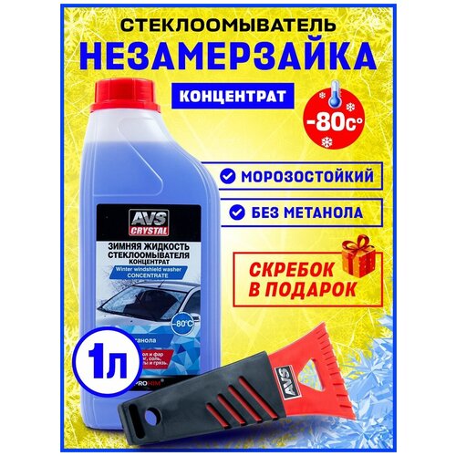 Концентрат незамерзающей жидкости "Незамерзайка" для автомобиля AVS / Морозостойкий -80 / Без метанола / Подарок скребок