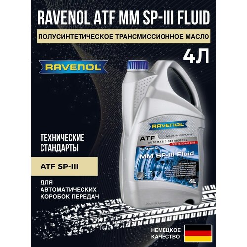 Масло АКПП RAVENOL MM SP-III Fluid произведено в Германии на основе гидрокрекингового базового масла с добавлением полиальфаолефинов и применением специального комплекса присадок. Предназначено для автоматических коробок передач автомобилей MITSUBISHI, HYUNDAI, KIA. Гарантирует максимальную защиту во всех режимах эксплуатации. Является аналогом масла Mitsubishi ATF SP3 и заменяет жидкости предыдущих поколений SP и SP2 Fluid. Перед заменой масла в АКПП рекомендуется промыть систему с помощью RAVENOL MM SP-III Fluid. Применение RAVENOL MM SP-III Fluid обеспечиваетОчень хорошие смазывающие свойства даже при низких температурах в зимний периодСтабильно высокий индекс вязкостиНизкую температуру застыванияВысокую устойчивость к окислениюКомплексную защиту от износа, коррозии и пенообразованияСлаженную работу сцепленияНейтральное поведение по отношению к уплотнительным материаламНейтральное поведение по отношению к цветными металлам за счет ингибирования