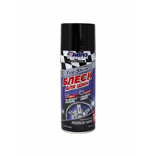 Блеск для шин ABRO MASTERS 400 млИспользуется в качестве профилактики выцветания, старения и растрескивания резины, для ее консервации, а также продления срока службы любых резиновых изделий.свойства• Специальная формула из высокотехнологичных полимеров.• Мгновенно придает шинам влажный блеск и насыщенный темный цвет.• Улучшает внешний вид и защищает шины от воздействия УФ-лучей и дорожных реагентов.• Не смывается водой, эффект сохраняется в течение нескольких недель.• Легкое и быстрое в использовании средство.