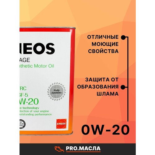 Стандартизация и спецификация: API SN/RC ILSAC GF-5. Экологическое высококачественное моторное масло для четырехтактных бензиновых двигателей, в том числе для применения в автомобилях, оборудованных гибридной установкой, системой Start-Stop и турбонаддувом. Рекомендовано к применению в современных бензиновых двигателях, характеризующихся высокой топливной экономичностью, в техническом руководстве по эксплуатации которых указана рекомендуемая вязкость моторного масла SAE 0W-20. Моторное масло ENEOS ECOSTAGE SN/RC 0W-20 произведено на основе базовых масел наивысшей степени очистки. Благодаря применению технологии ENEOS CORPORATION (Япония), имеет максимальную степень очистки от нежелательных примесей, обладает наивысшими физико-химическими характеристиками, устойчивостью к окислению, испаряемости, стабильности вязкости и высокому сопротивлению масляной пленки на сдвиг.