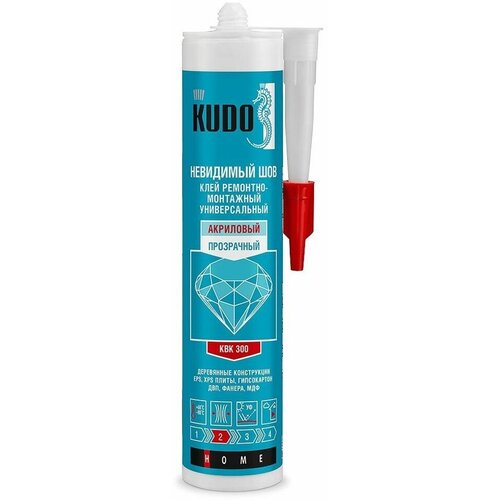 Высококачественный универсальный акриловый клей «невидимый шов» KUDO специально разработан для приклеивания изделий из древесины, ДСП, ДВП, EPS, XPS и UPVC на бетонные, кирпичные, каменные, металлические, оштукатуренные и деревянные поверхности. Идеально подходит для сборки деревянных конструкций, приклеивания гипсокартона, OSB плит, декоративных элементов, подоконников, утеплителей различных видов. После высыхания образует эластичную прозрачную плёнку. Существенно ускоряет отделочные работы, экономичен и прост в использовании. Предназначен для внутренних работ. Не рекомендуется использовать в ванных комнатах и душевых кабинах. Не содержит растворителей, не токсичен и не горюч. Химически нейтральный, не вызывает коррозии металлов. Не имеет запаха. Легко наносится и очищается. После полного отверждения можно окрашивать водными и синтетическими красками. Не подходит для непрерывного погружения в воду.