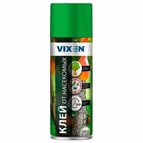 Клей от насекомых, аэрозоль 520 мл VX91054 VIXEN. Аэрозольный клей предназначен для эффективной защиты деревьев в качестве ловчего пояса от всех видов ползающих насекомых. Может также использоваться в теплицах, внутри помещений для изготовления ловушек от бытовых насекомых, для наружной отделки дома (цоколя) для защиты от проникновения внутрь муравьев и других насекомых. Клей не имеет цвета и запаха, влагостоек. Удобен в применении, легко наносится равномерным слоем и не течет при обработке вертикальной поверхности. Состав не токсичен, поэтому клей может быть использован для ловушек в зонах хранения продуктов, в том числе на складах пищевой продукции. Внимание! Не допускать прямого контакта с пищевыми продуктами. Инструкция по использованию: Перед использованием очистите от грязи обрабатываемую поверхность. Работы проводить при температуре от +10 до + 25С. Перед нанесением клея энергично встряхните баллон в течение 30 сек. Для изготовления ловчего пояса: оберните вокруг ствола дерева полиэтиленовую пленку в 2-3 слоя на высоте 40-70 см от земли. Пленка должна плотно прилегать к дереву, чтобы не было зазоров. Нанесите клей равномерным тонким слоем шириной 15-20 см по всей окружности ствола. Для создания "ловушек" в помещении или на улице нанесите клей на подложку (бумага, картон) с расстояния 20-30 см в 2-3 слоя равномерным слоем. Далее положите подложку на горизонтальную поверхность или прикрепите при помощи скотча в местах наиболее вероятной миграции насекомых. Обработанная поверхность приобретает клейкие свойства через 30 секунд после нанесения клея. Использованную "ловушку" утилизировать как бытовые отходы.