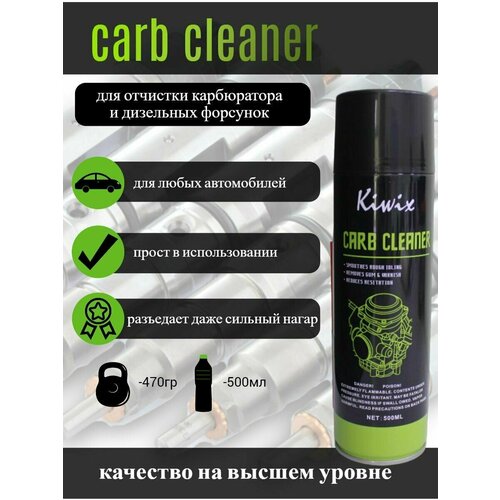 Высокоэффективный очиститель карбюратора и дроссельных заслонок KIWIX. Сфера применения: предназначен для очистки карбюратора и дроссельных заслонок. Свойства: быстро растворяет и удаляет углеродистые отложения, нагар, масло и прочие загрязнения с дроссельных заслонок, карбюратора и прочих деталей топливной системы; подходит для карбюраторных и инжекторных двигателей (EFI, MPI, GDI, FSI и т. д.); обеспечивает быстрый запуск двигателя и его плавную работу на холостом ходу; способствует снижению расхода топлива; безопасен для каталитического нейтрализатора выхлопных газов и кислородных датчиков; снижает токсичность выхлопных газов; помимо основного предназначения можно использовать для очистки любых маслянистых загрязнений, нагара, смазки; при использовании бензина низкого качества рекомендуется использовать очиститель карбюратора каждые 7000-10 000 км.