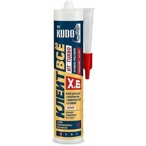 Клей-герметик KUDO HT TURBO KX-6W предназначен для создания жёстких высокопрочных постоянно эластичных клеевых соединений. Используется для монтажа строительных и декоративных элементов (зеркал, подоконников, дверных порогов, систем кондиционирования и вентиляции, лестничных ступеней и т. п.) на бетонные , кирпичные, каменные, металлические, деревянные и другие поверхности (кроме поверхностей из полиэтилена, полипропилена и фторопласта). Цвет - белый. Температура применения - от +5 до +35 °С.