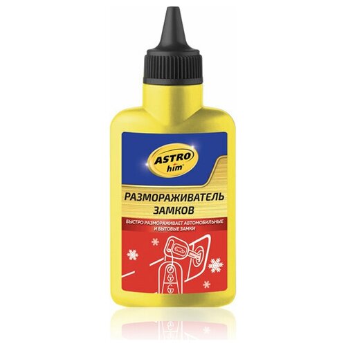 Размораживатель замков 60мл флакон AC101 ASTROHIMПревосходное средство для размораживания автомобильных и бытовых замков любых типов. Для предотвращения замерзания личинок замков рекомендуется проводить обработку после каждой мойки автомобиля.рекомендации ПО использованиюОтверните крышку и впрысните содержимое в личинку замерзшего замка. Дайте средству подействовать, при необходимости повторите обработку.меры безопасностиОпасно! Легковоспламеняющаяся жидкость. Беречь от источников воспламенения, нагревания, искр, открытого огня и статического электричества. Держать в плотно закрытой упаковке. При использовании продукции не курить, не пить, не принимать пищу. При работе использовать СИЗ. При попадании на кожу или в глаза промыть большим количеством воды. При необходимости обратиться за медицинской помощью. Не вдыхать испарения и брызги, избегать попадания внутрь. При проглатывании прополоскать рот, обратиться за медицинской помощью при плохом самочувствии. Использовать только на открытом воздухе или в хорошо вентилируемом помещении. После работы тщательно вымыть руки. Беречь от детей. Использовать по назначению.Условия транспортировки и хранения.Хранить в прохладном, хорошо вентилируемом недоступном для посторонних месте, в плотно закрытой упаковке при температуре от -50 до +40 °С. Срок годности 3 года.