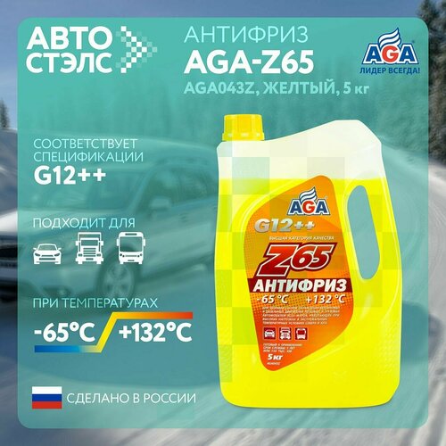 Антифриз AGA Z65 G12++ готовый -65C +123С, желтый, 5 кг AGA043Z, охлаждающая жидкость