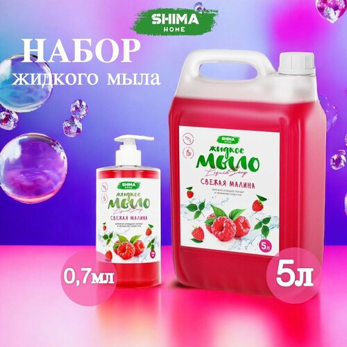 Набор жидкого мыла для рук и тела "Свежая малина" 5л + бутылка с дозатором 700мл