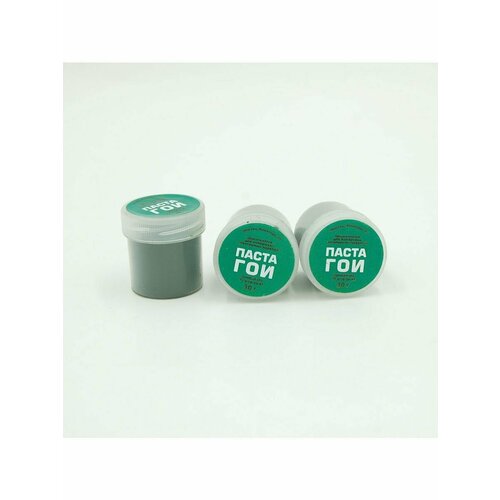 Паста ГОИ комплект 3 шт. Универсальная абразивная полировальная паста ГОИ №2 применяется для полировки монет и ювелирных изделий (украшений) из металла, пластмассы и полимеров, для очков часов, фар автомобиля и других изделий. Полироль придает зеркальный блеск серебру, золоту, металлу и др. Это средство используется для шлифования и полирования поверхности керамических изделий, стекол, фар, пластика автомобиля. Паста ГОИ - это шлифовальная и полировальная паста на основе оксида хрома(III). В зависимости от размера абразивных частиц производят четыре вида пасты. Паста №2 используется для тонкой полировки и не предназначена для удаления царапин! Для царапин и штрихов подойдет более грубая паста. Полировальная паста ГОИ тонкая №2 – имеет темно-зеленый оттенок. Эксплуатация состоит в нежном полировании с приданием изделию блеска, как в первом варианте. Жир составляет также 10%, сесквиоксид хрома – 74%, керосин – 2%, силикагель – 2%, двууглекислый натрий – 0,2%. Пастой ГОИ называют совокупность материалов, созданных из хромовой зелени. Благодаря им выполняют полировку и шлифовку стекольной продукции, предметов, изготовленных из металла стали, пластика, стекла, керамики и композитов. Данное вещество оптимально применять для ликвидации царапин, налета, придать блестящий вид изделию. Как пользоваться чистящей пастой ГОИ? Чтобы понять, как пользоваться правильно пастой ГОИ, рекомендуют прочитать инструкцию, так как надобно следовать определенным этапам: Небольшое количество следует нанести на мягкую ткань или войлочный круг. Наносить средство сразу на предмет не надо. Предварительно материал можно смочить в бензине или керосине. Пасту растереть при помощи металла. Таким способом удаляются большие абразивные куски, которые могут нанести вред. На поверхность добавить немного промышленного масла и приступать к полировке. Время от времени советуют обновлять смазочное вещество. Паста ГОИ - это твердый брусок зеленого цвета, который перед использованием нужно размягчить до пастообразного состояния. Растворители для пасты: спирт, масло, ацетон, бензин.
