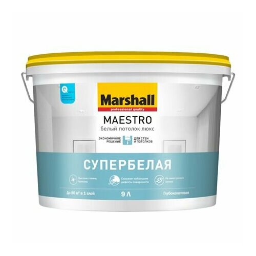 MARSHALL MAESTRO белый потолок люкс краска водно-дисперсионная для потолков, глубокоматовая (9л)