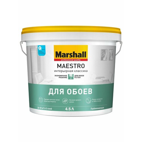Глубокоматовая водно-дисперсионная краска для отделки всех типов обоев под покраску, а также стен и потолков в помещениях с умеренной влажностью и невысокой эксплуатационной нагрузкой, не требующих мытья. Обладает высокой адгезией к поверхности, продлевая срок службы покрытия. Краска легко наносится без разбрызгивания и потеков, не образует следов от инструмента и неравномерно прокрашенных участков на поверхности. Покрытие устойчиво к сухой уборке. Быстро высыхает. Не имеет резкого запаха. Для внутренних работ. Подходит для нанесения на обои под покраску, а также полностью просохшие минеральные поверхности (бетон, штукатурка, кирпич), гипсокартон. Рекомендуется для применения в помещениях с умеренной влажностью и слабой эксплуатационной нагрузкой, таких как спальня, кладовка, кабинет. Свойства: подходит для всех типов обоев под покраску; выдерживает сухую уборку; абсолютно матовое покрытие. Перед применением тщательно перемешать, произвести подготовку поверхности. Рекомендуется наносить в два слоя при температуре от +5oC до +30oС, относительной влажности воздуха от 40 до 80%. Для укрепления базовой поверхности и повышения адгезии слабо связанные или пористые поверхности обработать грунтовкой глубокого проникновения Export Base. Разбавление. Для первого (грунтовочного) слоя при необходимости краску разбавить в соотношении не более 1 части воды на 10 частей краски. Для следующего слоя разбавление не требуется. Уход за окрашенной поверхностью. Устойчива к сухой уборке. Условия транспортировки и хранения:2 года при t° от +5oC до +30oС вдали от источников излучения, нагревательных и осветительных приборов.