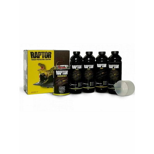 RAPTOR (Раптор для автомобиля) высокопрочное защитное полиуретановое покрытие раптор (краска) черного цвета для кузова автомобиля. Представляет собой двухкомпонентный особо прочный долговечный материал для защиты кузова пикапов и грузовиков, а также техники, подверженной тяжелым условиям эксплуатации. Обладает повышенной стойкостью к царапинам, сколам и другим механическим повреждениям. Обеспечивает эффективную защиту от сырости, ржавчины, плесени, солей и повышенных температур. Уретановая формула обеспечивает ускоренное время сушки и превосходную защиту от ультрафиолетового излучения. U-POL Raptor после высыхания имеет высокую "шагрень", может наноситься на все типы поверхностей и при необходимости может быть покрыт любыми акриловыми автоэмалями. Применяется с отвердителем U-POL S2032. Бесцветная версия продукта может колероваться специальными концентрированными пигментами U-POL. При отсутствии доступа к пигментам может колероваться добавлением небольшого количества акриловой эмали (не более 10%). Материал наносится из специального пистолета для антигравийных составов.