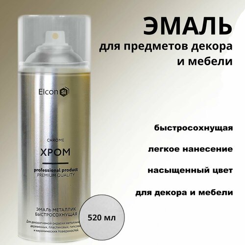 Эмаль аэрозольная Хром для предметов декора и мебели 520мл Elcon