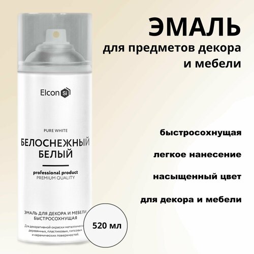 Эмаль аэрозольная Белоснежный белый для предметов декора и мебели 520мл Elcon