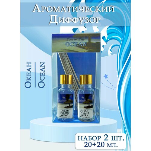 Диффузор ароматический для дома, набор 2 шт. / Ароматизатор для дома с палочками, Океан / Ocean 20+20 мл. AM-38
