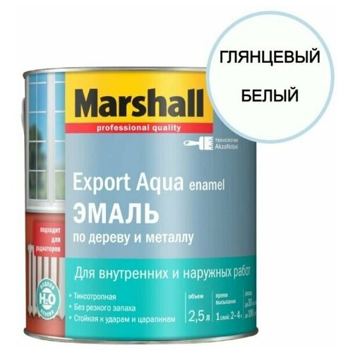 Эмаль для дерева и металла водная Marshall Export Aqua глянцевая белая 2,5 л.