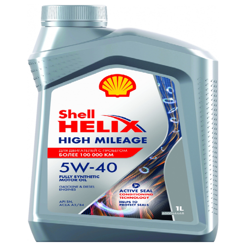 Shell Helix High Mileage 5W-40 Синтетическое моторное масло подходит как для бензиновых так и для дизельных двигателей разработано специально для автомобилей с пробегом более 100.00 км.