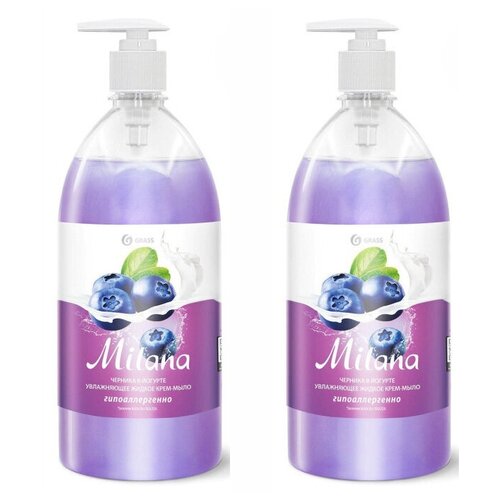 GraSS Milana Жидкое крем-мыло для рук Черника в йогурте с дозатором 1000мл (2 шт в наборе)