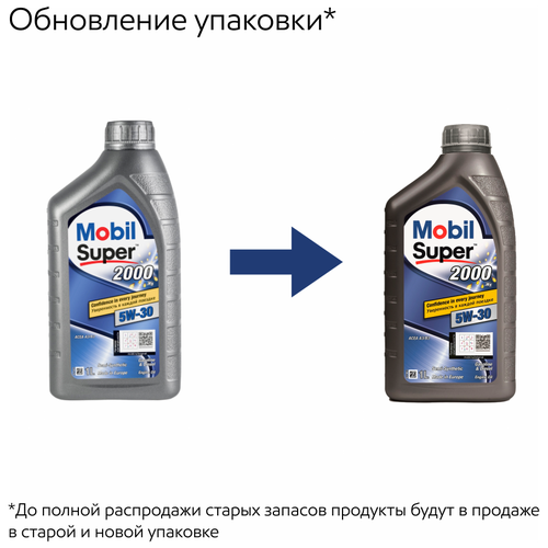 Моторные масла Mobil Super™ 2000 – премиальные моторные масла на основе синтетической технологии, созданные для обеспечения высокого уровня защиты двигателяMobil Super™ 2000 х1 5W-30 — моторное масло на основе синтетической технологии, подходит для автомобилей Lada, Hyundai, Kia, Nissan, UAZ с бензиновым и дизельным двигателем без систем очистки выхлопных газов.Преимущества:- Надежная защита от износа- Высокий уровень чистоты двигателя- Защита двигателя от отложений и шлама в широком температурном диапазоне