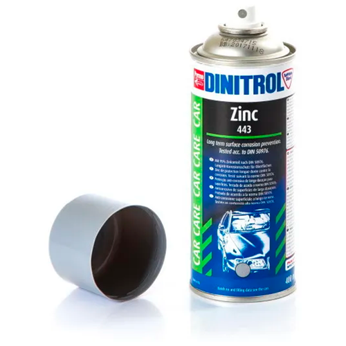 Динитрол 443 Холодное цинкование (цинковая грунтовка) 400 мл, аэрозоль.Описание продуктаГрунтовка Динитрол 443 — «холодный цинк» — это полностью пригодный к применению жидкий однокомпонентный состав, содержащий 95 % электролитического цинка чистотой 99,995 %, и 5 % синтетического каучука. Относится к так называемым покрытиям с двойственной системой защиты: первый слой — катодный (активный), как у горячей оцинковки, второй (верхний), как у красок — пассивный.Материал предназначен для ремонтных кузовных работ, защите сварочных швов на оцинкованных трубах.Применении Dinitrol 443 в качестве грунта увеличивает общий срок эксплуатации в 1,5 – 2,5 раза. В зависимости от толщины цинкового слоя и условий эксплуатации срок службы покрытия составляет 25 – 50 лет.Грунтовка Динитрол 443. Область примененияТранспорт, мосты, дороги, строительство, промышленные объекты, гидросооружения, городские объекты, нефтегазовая промышленность.Dinitrol 443 отличается от красок с цинковым наполнителем тем, что слой цинка действует в электролитном растворе (основная причина образования коррозии), как анод, отдавая частицы катоду (металл) до полного израсходования цинка. А т. к. грунтовка Динитрол имеет пористую структуру, при окислении металла соли заполняют эти поры и на поверхности образуется защитный слой (пассивный), препятствующий попаданию воды в нижние (активные) слои. После потери свойств активного слоя, верхний слой продолжает защищать материал.Благодаря синтетическому каучуку, слой Dinitrol 443 не становится абсолютно твёрдым, оставаясь всегда эластичным, и выдерживает механическую деформацию без сколов и повреждений. Одним из важных составляющих является такое свойство, как термостойкость. Слой выдерживает температуры от -40 до +150 °С без потери своих свойств, что расширяет область применения.