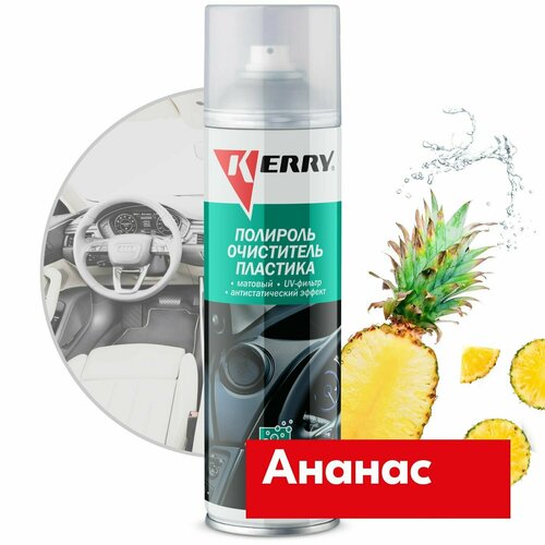 Пенный полироль KERRY - очиститель пластика салона с матовым эффектом, запах ананас, 335 мл