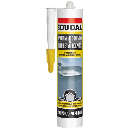 Герметик битумный Soudal, кровельный, 280 мл. Водостойкий и водонепроницаемый герметик Soudal на основе битумных эластомеров применяется для ремонта крыш, водостоков и кровельных работ. Преимущества Устойчив к УФ-излучению и температурам в диапазоне от ‒ 35 до +130 °С. Не вступает в реакцию с пенопластом. Отличная адгезия (прилипание) к рубероиду и битумным поверхностям, бетону, керамической черепице и металлам. Применение: Герметизация щелей и трещин в кровельных покрытиях. Герметизация во время кровельных работ. Ремонт водосточных труб и желобов. Холодная склейка рубероида всех видов. Водонепроницаемая герметизация строительных соединений с небольшой движимостью (до 10 %).Герметик используется со специальными(1262745)