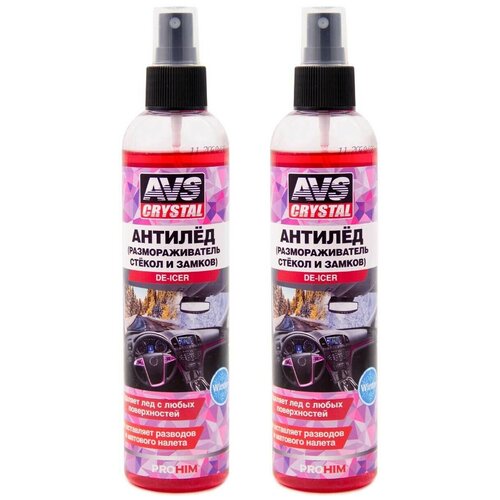 Размораживатель AVS, для стекол и замков, антилед, с распылителем, 250 мл (2 шт)