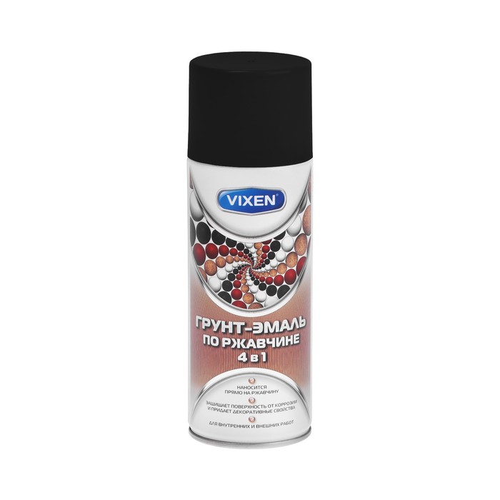 Грунт-эмаль по ржавчине 4 в 1 черный янтарь ral 9005 аэрозоль 520мл vixen, VIXEN VX519005 (1 шт.)