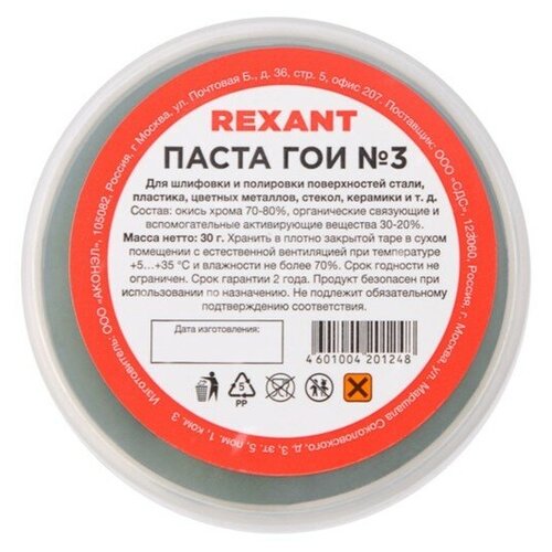 Паста ГОИ полировальная Rexant № 3, 30 г