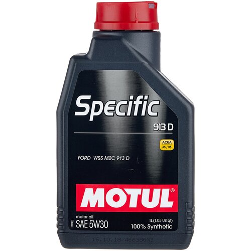 Масло моторное MOTUL SPECIFIC FORD 913D 5W30 1лВысокотехнологичное 100% синтетическоеэнергосберегающее моторное масло. Специальноразработано для использования в двигателях автомобилейFord и других производителей, где требуются масла низкойвеличиной вязкости HTHS (высокая температура ивысокая скорость сдвига), находящейся в пределах от 2.9до 3.5 мПа.с: Ford, Rover, Jaguar, Land Rover.Применимо для современных бензиновых и дизельныхдвигателей, требующих энергосберегающих масел (ACEAA1/B1 или A5/B5) с классом вязкости SAE 5W-30 иклассическим содержанием сульфатной золы, фосфора исеры (Full SAPS). Может использоваться в автомобилях скаталитическим нейтрализатором или сажевым фильтром(DPF).При необходимости, перед применением следуетознакомиться с инструкцией по эксплуатациитранспортного средства.