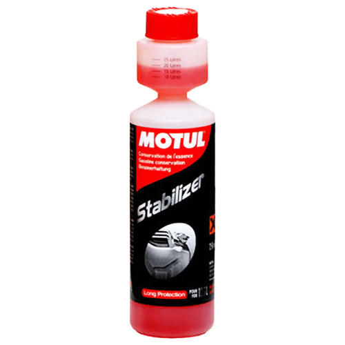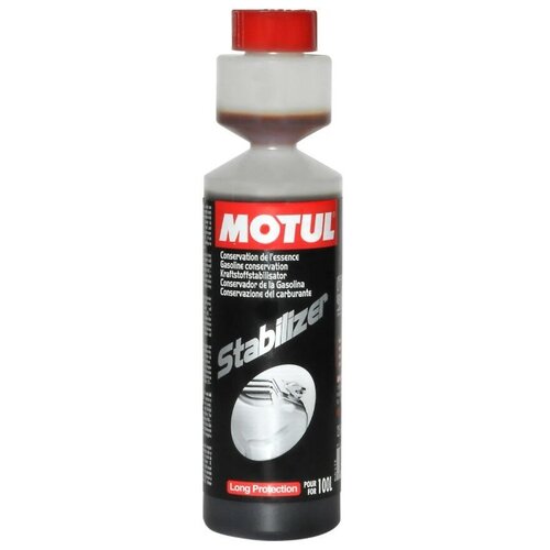 Стабилизатор топлива Motul для сезонной консервации. Предназначен для четырехтактных и двухтактных моторов с предварительным смешиванием масла. Консервирует топливо на срок до 24 месяцев.Бутылка объемом 250 мл рассчитана на 100 литра топлива.Предотвращает окисление и осмоление бензина, что упрощает запуск после консервации.Предотвращает образование отложений в карбюраторе, камере сгорания и на клапанах.Совместим с этилированным и неэтилированным бензином Совместим с каталитическими нейтрализаторами.Подходит для садовой, водной техники, мотоциклов, снегоходов и т.д