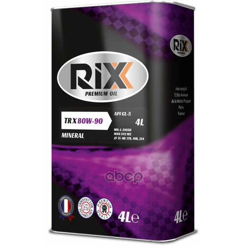 Масло Трансмиссионное 80w-90 Rixx 4 Л Tr X Gl-5 Rixx Арт. Rx0007trx