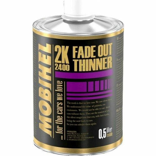 Разбавитель MOBIHEL 2К 2400 VOC для снятия перехода, 0.5 л 47017331 рекомендуют использовать разбавитель для нивелирования оптической разницы между отремонтированным участком и старым лакокрасочным покрытием. Продукт смешивается с бесцветным лаком и распыляется только на зону перехода.