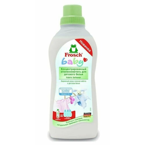 FROSCH BABY Ополаскиватель-концентрат для детского белья 750мл . Ополаскиватель для детского белья FROSCH Baby концентрат 750 мл используется на заключительном этапе стирки для придания аромата вещам. Применяется для детских вещей с первых дней жизни ребенка, а также для стирки одежды людей с чувствительной кожей. Ополаскиватель FROSCH с экстрактом ромашки дарит нежный уход и заботу о детском белье. Средство гипоаллергенно, не содержит красителей и дополнительных консервантов.