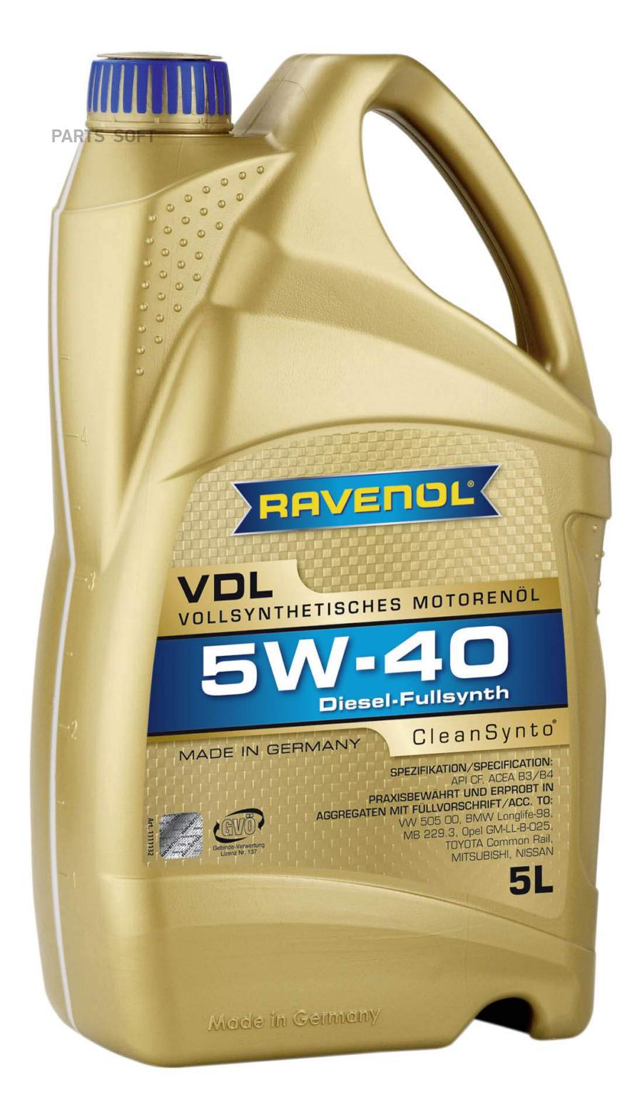 Моторное масло RAVENOL 5W40, 5W-40, 5 л