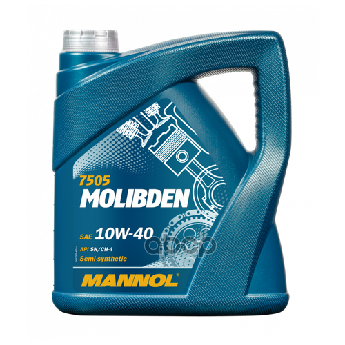 MANNOL 7505-4 Molibden Benzin 10W40 4Л. Api Sn/Ch-4. Полусинтетическое Моторное Масло