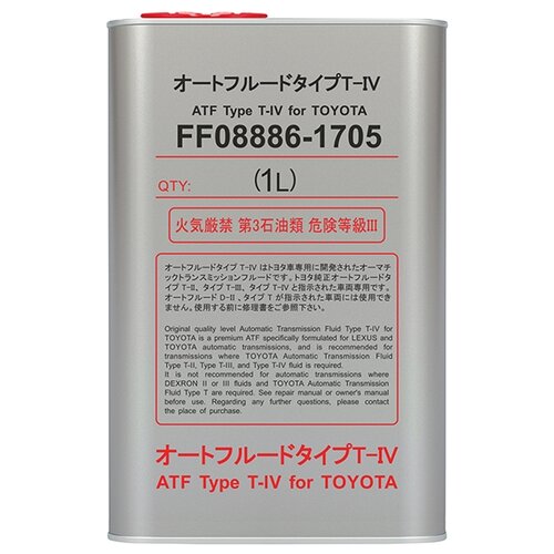 Специальное трансмиссионное синтетическое масло (ATF) для автоматических коробок передач (АКПП) автомобилей TOYOTA/LEXUS c коробками TOYOTA и AISIN AW нового поколения. Обеспечивает бесперебойную работу АКПП, гарантирует минимальный износ, продолжительный срок службы трансмиссий и экономию топлива. Разработано на основании требований компании AISIN WARNER. Свойства продукта:- Синтетическая основа высочайшего качества со стабильно высоким индексом вязкости в комбинации с многофункциональным пакетом присадок сохраняет все свои свойства в широком диапазоне температур: обеспечивает хорошие смазочные свойства при низких (-45°C) температурах зимой и обеспечивает стабильную масляную плёнку при экстремальных нагрузках и температурах летом;- Высокотехнологичная комбинация присадок обеспечивает хорошие антифрикционные свойства для зубчатых зацеплений и необходимые фрикционные свойства для фрикционных элементов, что обеспечивает существенную экономию топлива, плавное без рывков переключение передач и увеличение срока службы всех элементов трансмиссии. Обеспечивает слаженную и плавную работу сцеплений;- Обладает повышенной термоокислительной и химической стабильностью и стойкостью к высокотемпературной термической деградации на протяжении всего срока эксплуатации. Это позволяет снизить образование шлама, лака, нагара и других углеродистых отложений, увеличить интервал замены масла и обеспечить долговечность деталей трансмиссии, что снижает затраты на обслуживание техники;- Защищает от коррозии металлические детали из черных и цветных сплавов как в процессе работы, так и в нерабочем состоянии;- Эффективно противостоит аэрации и пенообразованию;- Обеспечивает совместимость со всеми материалами уплотнений, предотвращает их разбухание, затвердевание и усадку, что позволяет снизить затраты на запчасти и предотвращает утечки;- Снижает шум. Рекомендуется для АКПП Toyota и Aisin AW где требуется соответствие требованиям TOYOTA TYPE-IV. Может заменять жидкости T, T-II T-III.