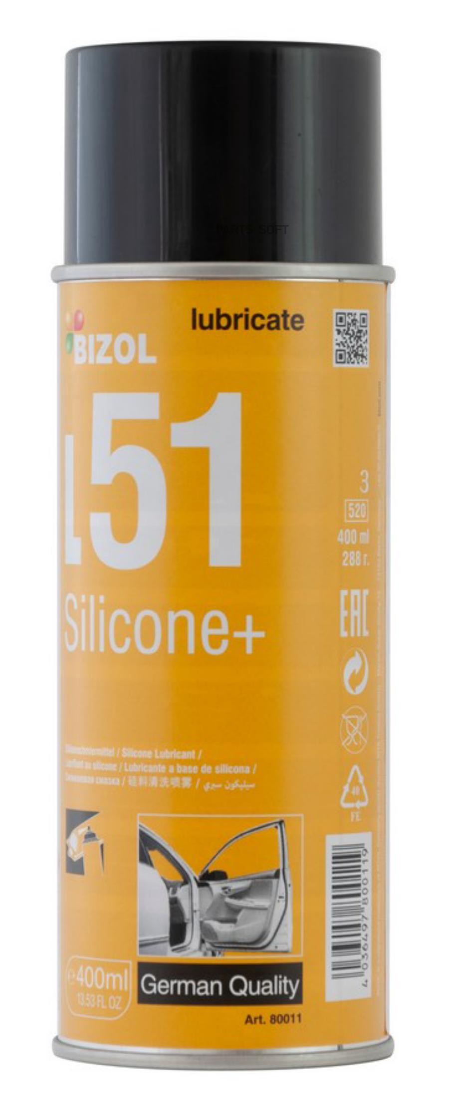 BIZOL 80011 Смазка силикон-спрей BIZOL 0,4л Silicone+ L51
