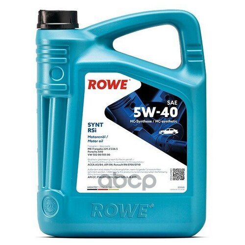 Масло Моторное 5w-40 Rowe 4л Нс-Синтетика Hightec Synt Rsi A3/B4
