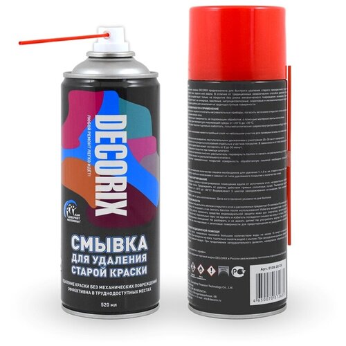 Высокоэффективная смывка Decorix предназначена для быстрого удаления старого лакокрасочного покрытия перед нанесением лака, краски или эмали. В отличие от традиционных механических способов удаления старых покрытий смывка воздействует только на покрытие без риска механического повреждения основания. Смывка эффективно воздействует на алкидные, масляные, нитроцеллюлозные, акриловые и меламиноалкидные покрытия. Аэрозольная смывка удобна для нанесения на труднодоступные поверхности. Применение: 1. Перед применением смывки отключить нагревательные приборы, погасить источники открытого огня и исключить возможность возникновения искр. 2. Защитить окружающие поверхности, не подлежащие обработке, с помощью малярной ленты и/или плёнки. 3. Наносить смывку при температуре окружающей среды от +10°С до +30°С. 4. Перед началом работ баллон тщательно взболтать. 5. Перед основным нанесением нанести пробный слой на небольшом участке для проверки основы на совместимость со смывкой. 6. Наносить равномерными возвратно-поступательными движениями с расстояния 25–30 см от поверхности. 7. Дать смывке впитаться и дождаться отслоения отдельных участков покрытия. В зависимости от типа лакокрасочного покрытия время воздействия может составлять от 2 до 30 минут. 8. Удалить отслоившееся покрытие при помощи шпателя. 9. После использования баллона очистить распылитель: перевернуть баллон и нажать на распылитель до прекращения выхода остатков смывки из распылительного клапана. 10. Перед нанесением лакокрасочных покрытий поверхность обработанную смывкой необходимо обезжирить растворителем.